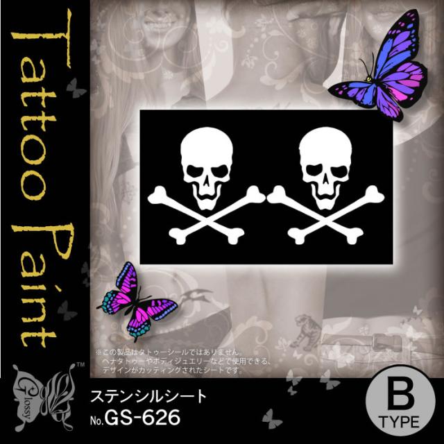 スカル 『ステンシルシート (GS-626)』ダイヤモンドタトゥーやヘナタトゥー用のデザインシート【メール便OK】