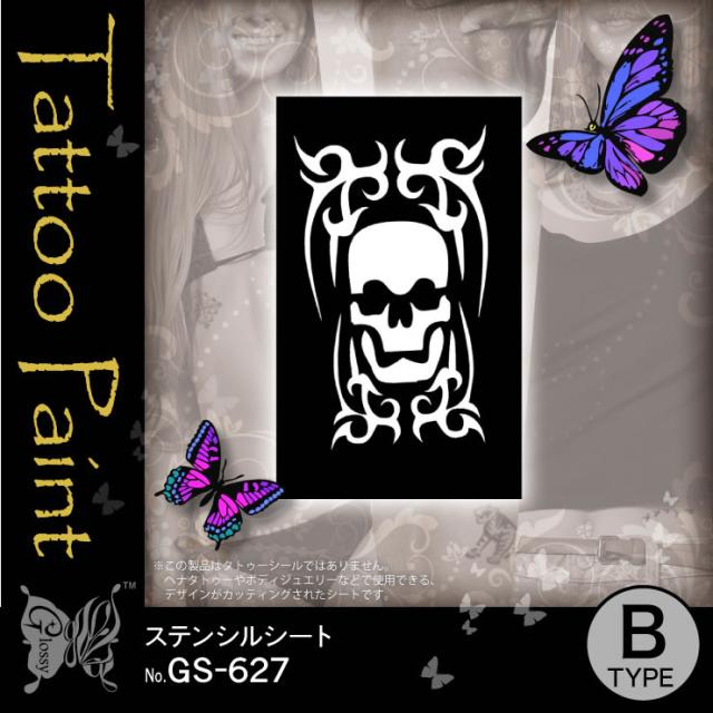 スカル 『ステンシルシート (GS-627)』ダイヤモンドタトゥーやヘナタトゥー用のデザインシート【メール便OK】