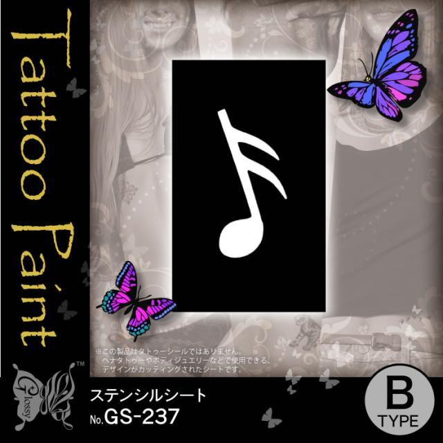 音符 『ステンシルシート (GS-237)』ダイヤモンドタトゥーやヘナタトゥー用のデザインシート【メール便OK】