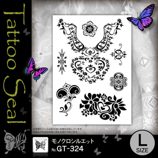フラワー 『タトゥーシール モノクロシルエット (GT-324)』水だけでカンタン転写 長持ち一週間 簡単に消せる刺青 【メール便OK】