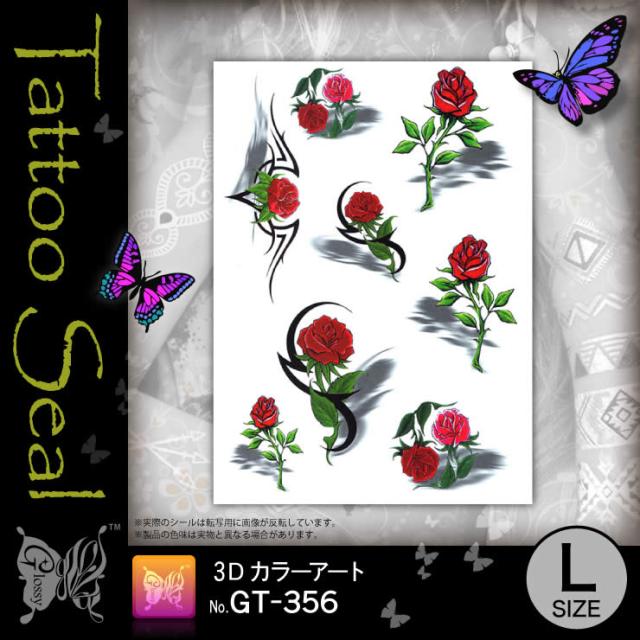 ローズ『タトゥーシール 3Dカラーアート (GT-356)』水だけでカンタン転写 長持ち一週間 簡単に消せる刺青 【メール便OK】