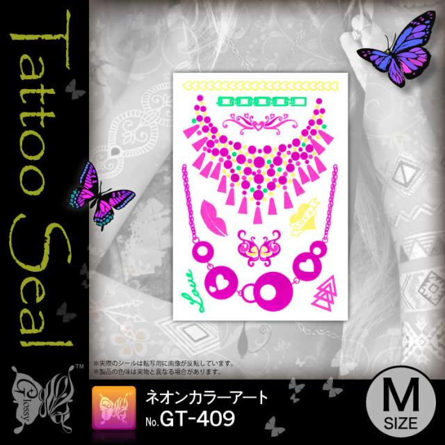 アクセサリー『タトゥーシール ネオンカラーアート (GT-409)』水だけでカンタン転写 長持ち一週間 簡単に消せる刺青 【メール便OK】