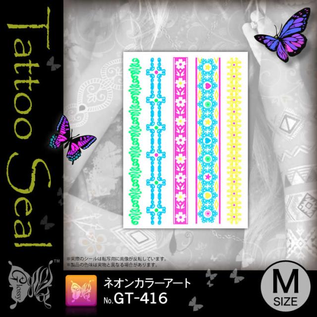 アート『タトゥーシール ネオンカラーアート (GT-416)』水だけでカンタン転写 長持ち一週間 簡単に消せる刺青 【メール便OK】