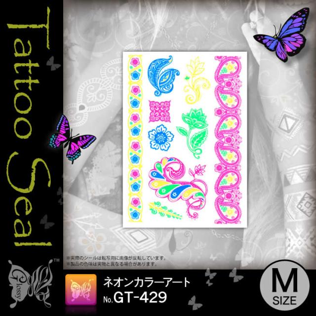 ペーズリー 『タトゥーシール ネオンカラーアート (GT-429)』水だけでカンタン転写 長持ち一週間 簡単に消せる刺青 【メール便OK】