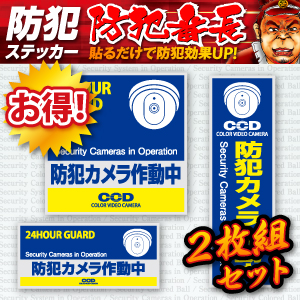 防犯ステッカー 「 防犯カメラ作動中 」 (OS-183) 2枚組 防犯シール セキュリティステッカー (ゆうパケット対応) 防犯対策