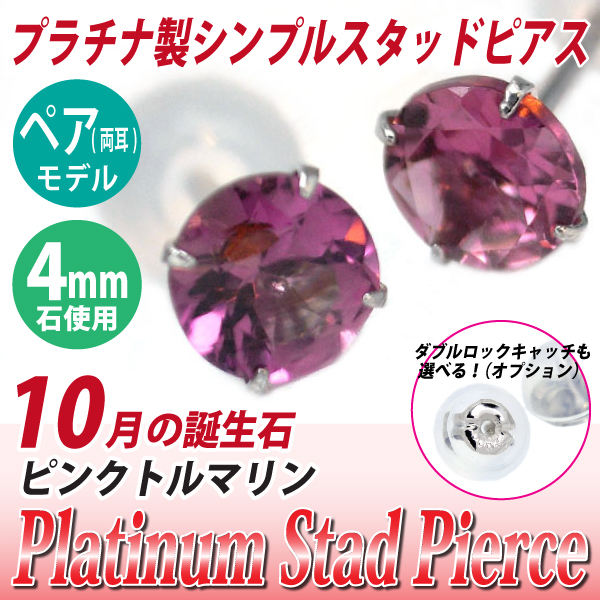 ピンクトルマリン ピアス 送料無料 Pt900プラチナ 4mm スタッド シンプル 両耳ペア ダブルロックキャッチ付 宅配便