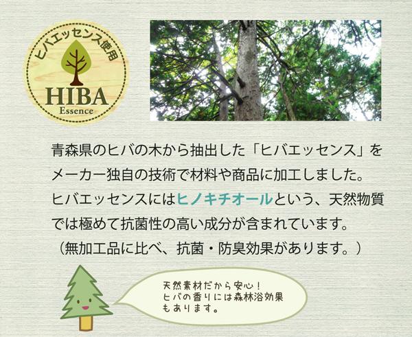 ヒバエッセンス練り込みパイプを使用しています。青森県のヒバの木から抽出した「ヒバエッセンス」をメーカー独自の技術でパイプに加工しました。ヒバエッセンスにはヒノキチオールという、天然物質では極めて抗菌性の高い成分が含まれています。(無加工品に比べ、抗菌・防臭効果があります。)ヒバエッセンスで安らかな森の眠りをご提案します。パイプ使用のため、通気性がよく、熱がこもらず心地よくご使用できます。ファスナー式で中材(パイプ)の交換、高さ(量)の調節が可能です。ご家庭で簡単にパイプが洗えます。