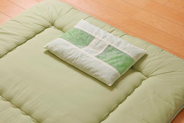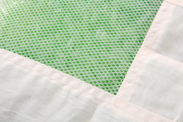 生地=側)綿100% メッシュ部分)ポリエステル100% 中材=ヒバエッセンス練り込みポリエチレンパイプ