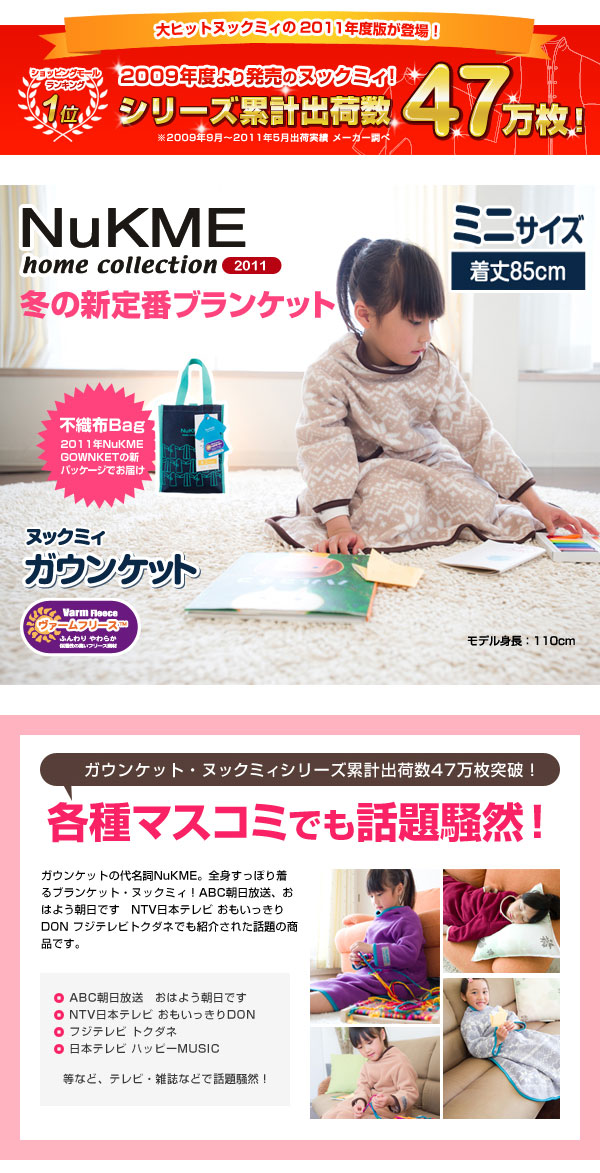 着る毛布 ヌックミィ 着るブランケット ブランケット 毛布 フリース ひざ掛け NuKME(ヌックミィ) ガウンケット ミニサイズ 着丈85cm スノー柄(代引不可)
