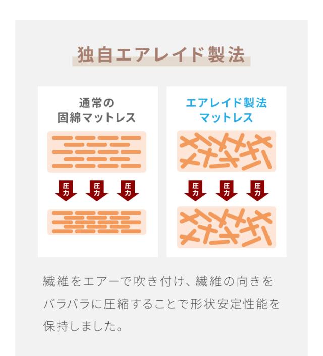 ◎独自技術エアレイド製法による高い形状安定性を誇る専用二つ折りマットレス。