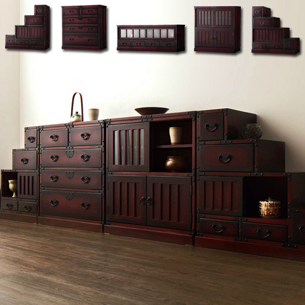 テレビ台 テレビボード 収納 引出し チェスト タンス 民芸調家具シリーズ 和モダン民芸家具 ローボード 引出箪笥 水屋箪笥(代引不可)【送料無料】