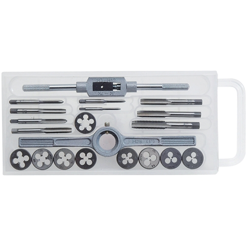 | 【用途】 一般鉄鋼のネジ切り用タップダイスセット。 【機能・特徴】 収納に便利なケース入りです。 【仕様】 ●セット内容数:20PCS。 ●タップハンドル・ダイスハンドル・収納ケース。 ●タップ:(タップサイズ)3X0.5・4X0.7・5X0.8・6X1.0・7X1.0・8X1.25・9X1.25・10X1.5・12X1.75。 ●ダイス:(ダイスサイズ)3X0.5・4X0.7・5X0.8・6X1.0・7X1.0・8X1.25・9X1.25・10X1.5・12X1.75。 【材質】 ●タングステン鋼。 | ||||