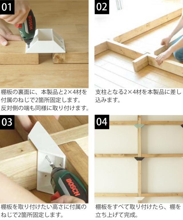 ※棚板に2×4より薄い木材を使う場合、付属のネジはお使いいただけません。