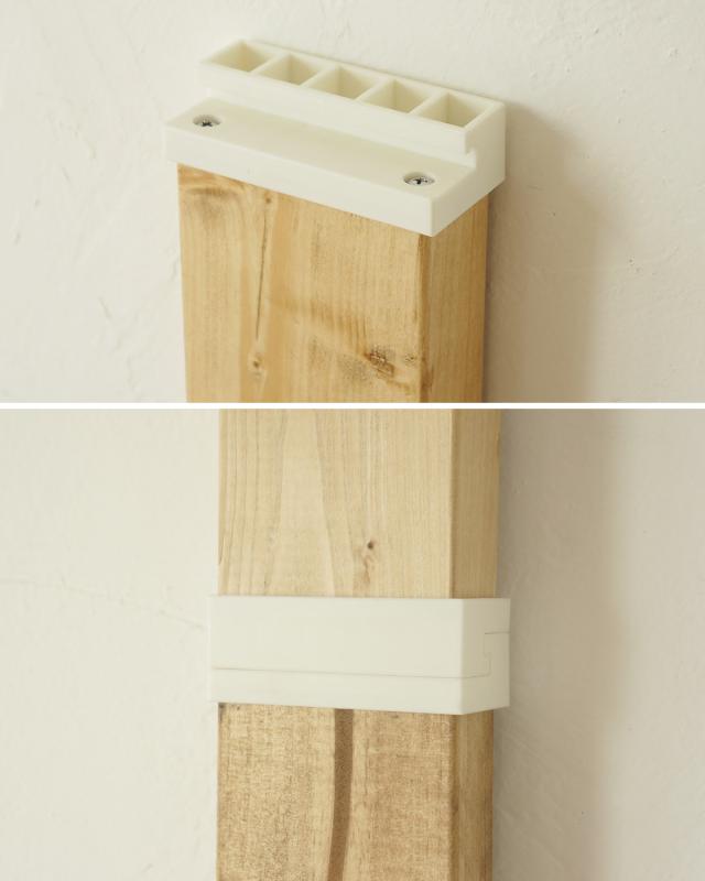 | 注意事項 | ※木材は付属しておりません。 ※この商品は縦突っ張り専用です。横向きには使用しないでください。 ※2カ所以上接合しないでください。 ※柱に対し片側に荷重が掛かる場合は、10kgまでとしてください。(棚板を使用する場合は棚板の重さも含みます) |
