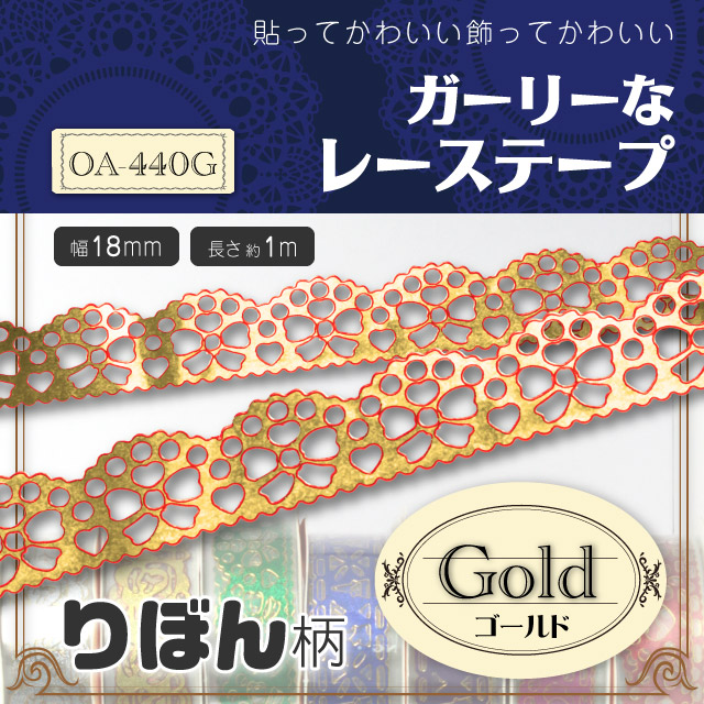 貼ってかわいい☆飾ってかわいい『ガーリーなレーステープ/りぼん柄』ゴールド(OA-440G)【メール便OK】