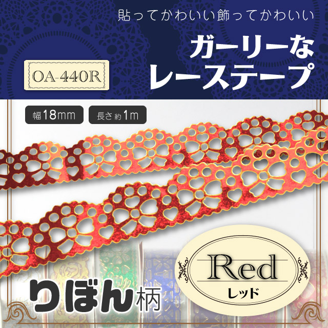 貼ってかわいい☆飾ってかわいい『ガーリーなレーステープ/りぼん柄』レッド(OA-440R)【メール便OK】