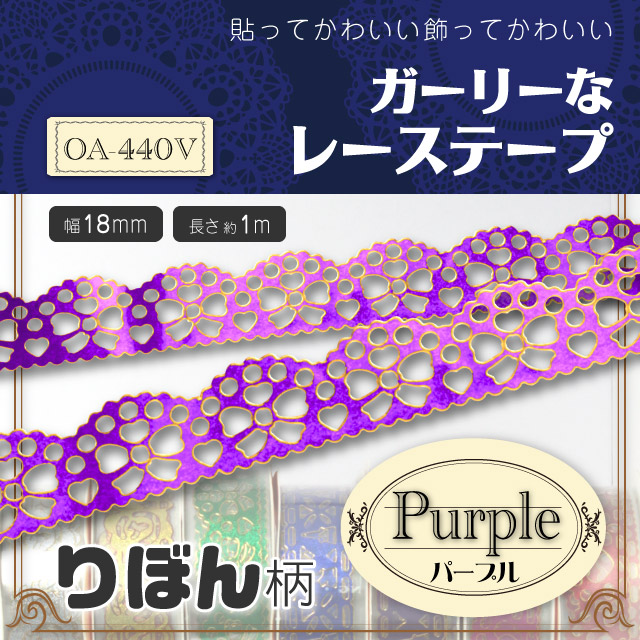 貼ってかわいい☆飾ってかわいい『ガーリーなレーステープ/りぼん柄』パープル(OA-440V)【メール便OK】