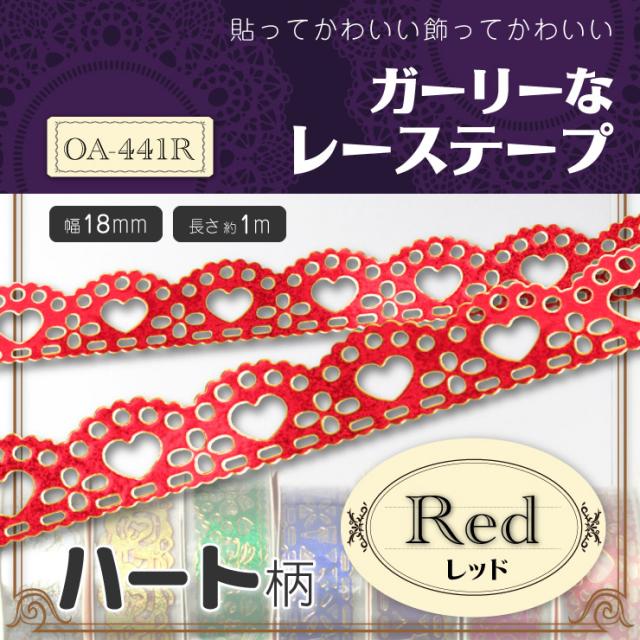 貼ってかわいい☆飾ってかわいい『ガーリーなレーステープ/ハート柄』レッド(OA-441R)【メール便OK】