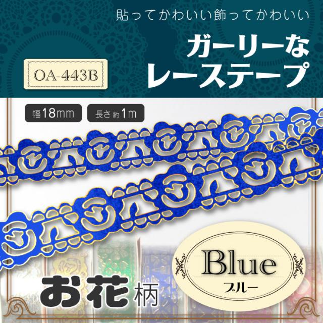 貼ってかわいい☆飾ってかわいい『ガーリーなレーステープ/お花柄』ブルー(OA-443B)【メール便OK】