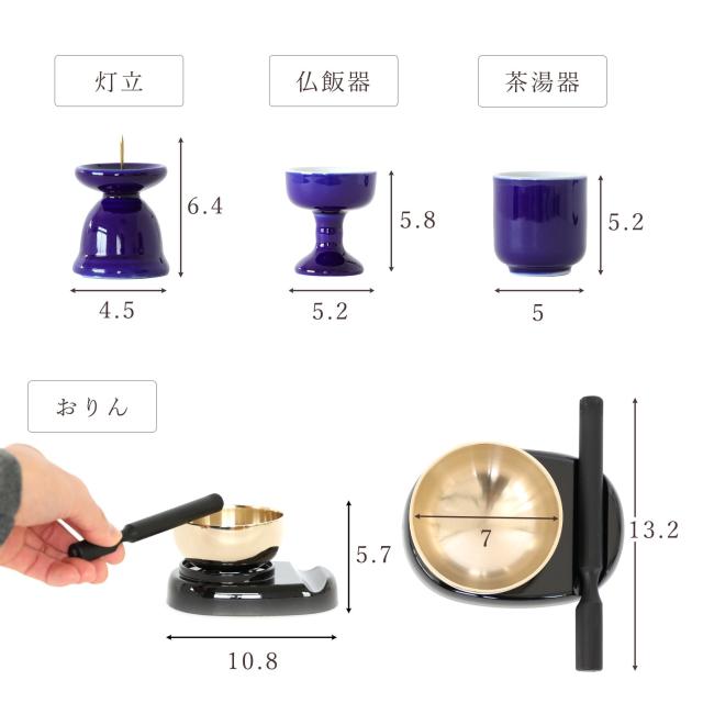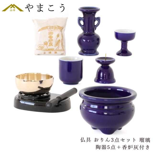 仏具 仏具セット おりん3点+陶器5点(瑠璃 ルリ)+香炉灰 セット 国産 日本製 ミニ 仏壇セット モダン仏具 モダン仏壇 お盆 お彼岸 お墓参り お供え 供養 法事 法要