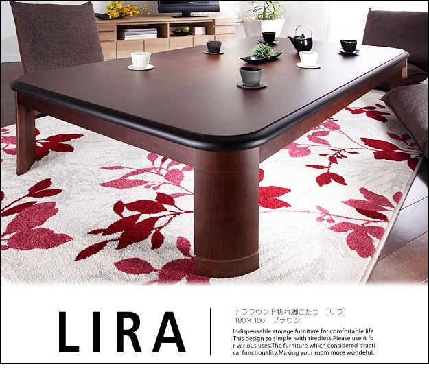こたつ テーブル 楢 ラウンド折れ脚 日本製 天然木 幅180 奥行き100 木製 おしゃれ 木目調 長方形 国産 茶 テーブルのみ こたつテーブル(代引不可)【送料無料】