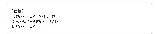 材質:天板-天然木化粧繊維板(ビーチ)、引出前板-天然木化粧合板(ビーチ)、脚部-天然木(ビーチ)・ラッカー塗装