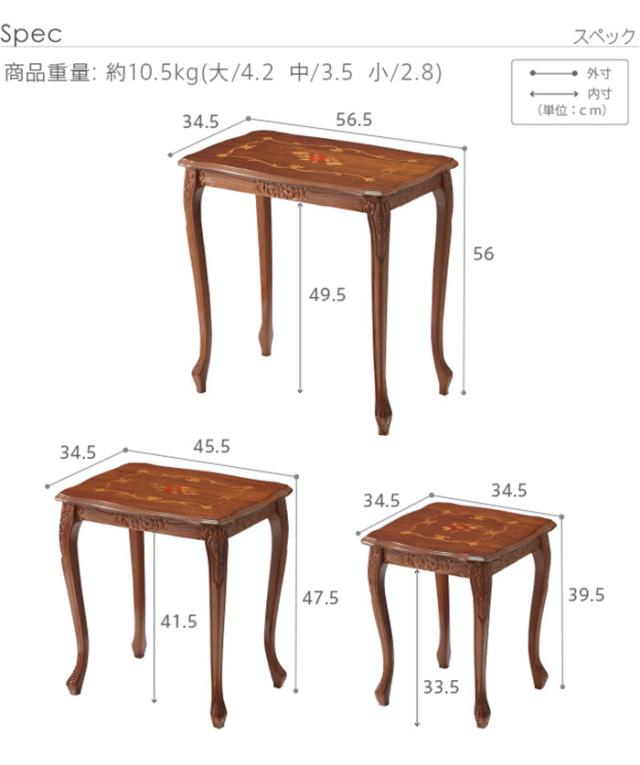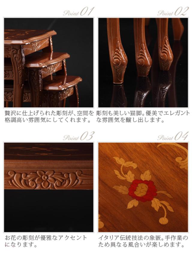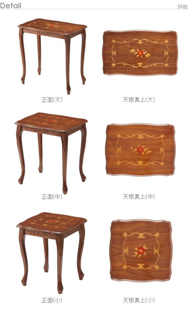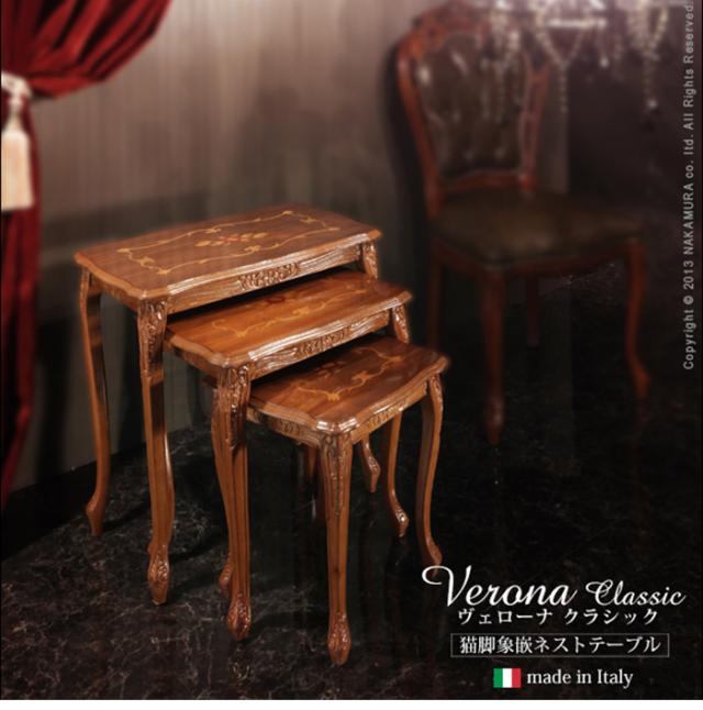 イタリア 家具 ヨーロピアン ヴェローナクラシック 猫脚象嵌ネストテーブル 猫脚 リビング ヨーロッパ家具 クラシック 輸入家具 アンティーク風 イタリア製 ブラウン おしゃれ 高級感 エレガント 木製(代引不可)【送料無料】