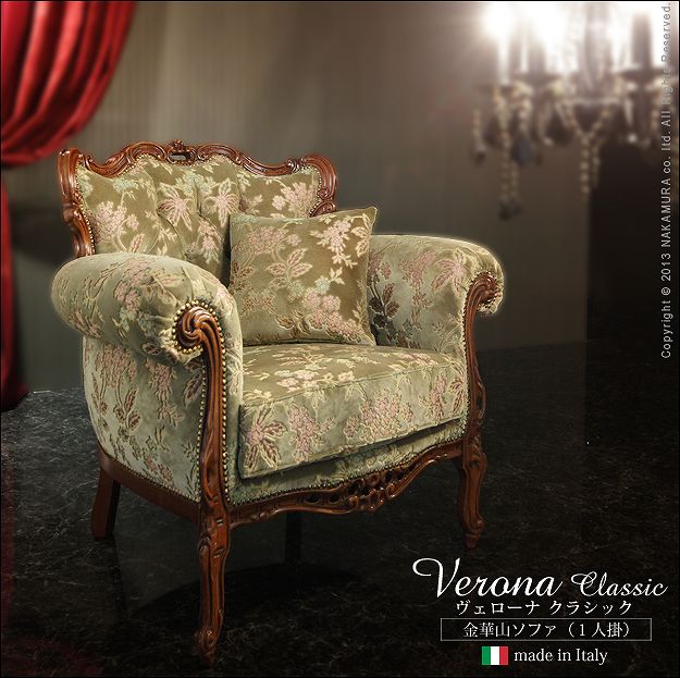 イタリア製 ヴェローナ クラシック 金華山 ソファ 一人掛け ソファー 肘付き 肘掛け付き おしゃれ 1人掛け ダイニング 花柄 高級感 アンティーク(代引不可)【送料無料】