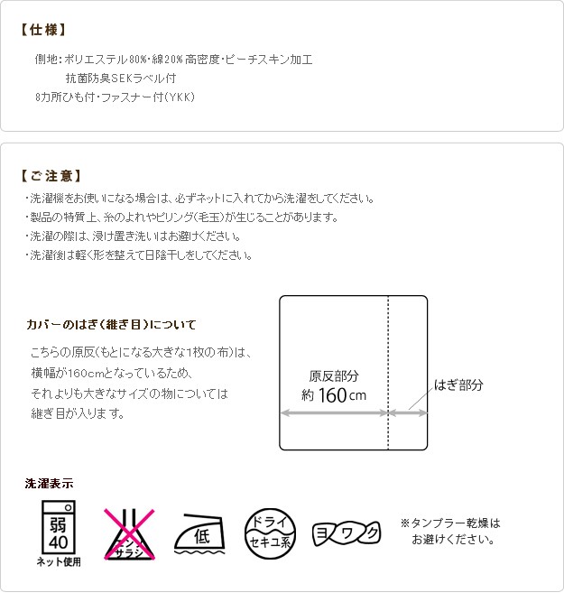 側地:ポリエステル80%、綿20%(高密度・ピーチスキン加工・抗菌防臭SEKラベル付)