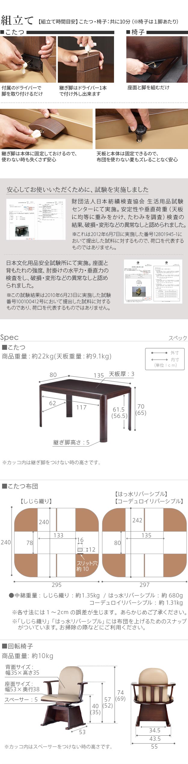135×80cm 2点セット(こたつ本体+こたつ布団)