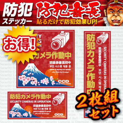 防犯ステッカー セキュリティステッカー 「防犯カメラ作動中」 (OS-406) 2枚組 多言語対応ダミーカメラの効果UPに和風【メール便OK】