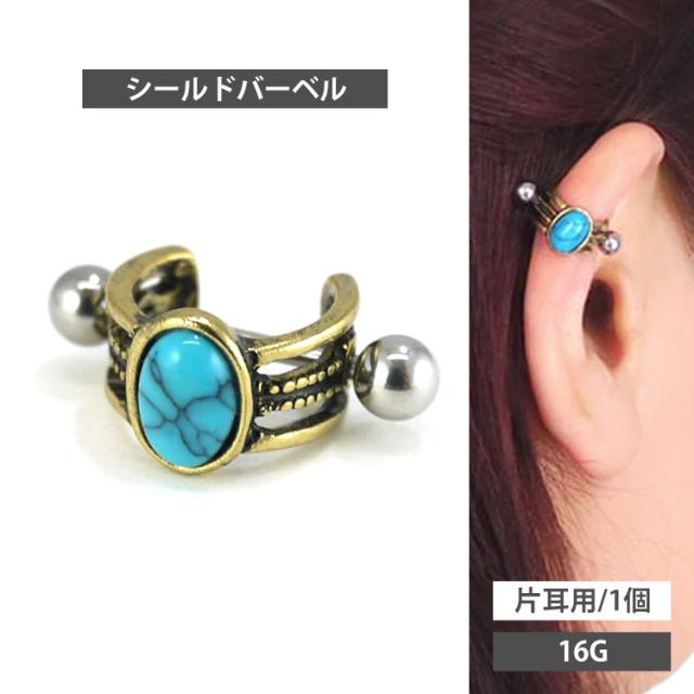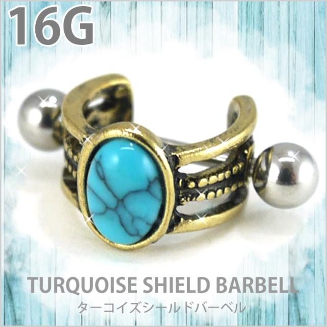ピアス 軟骨 ボディピアス ターコイズシールドバーベル 16G ストレートバーベル