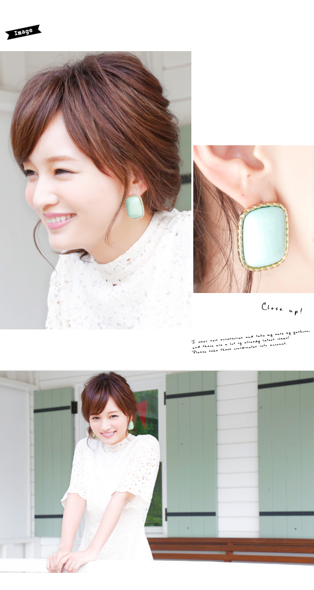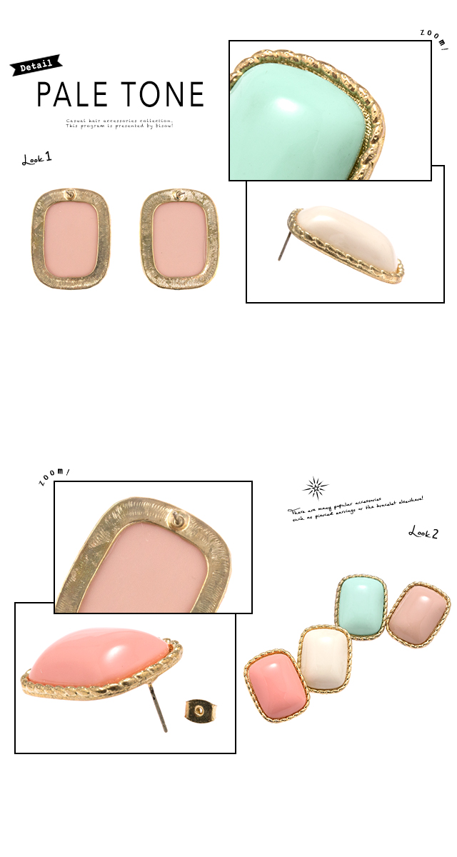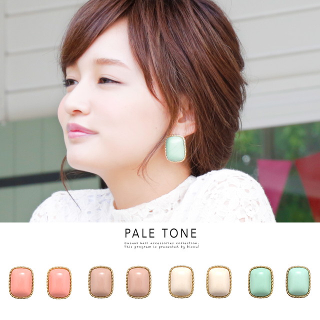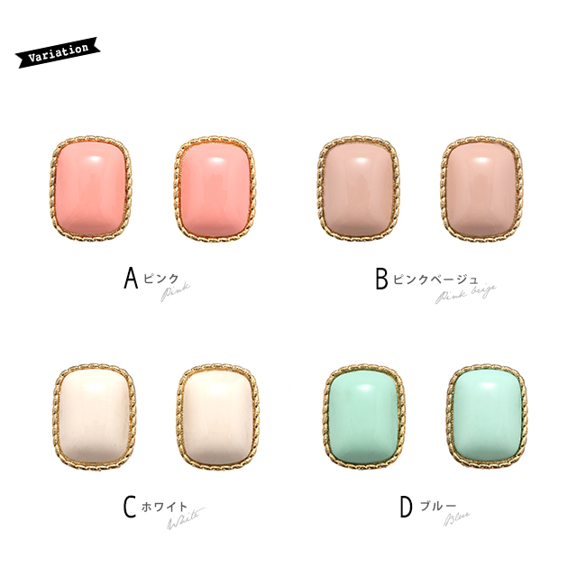 【シンプルなペールトーンがレトロなスクエアピアス】スタッドピアス/ゴールドフレーム/エスニック/リゾート/ガーリー/アクセサリー