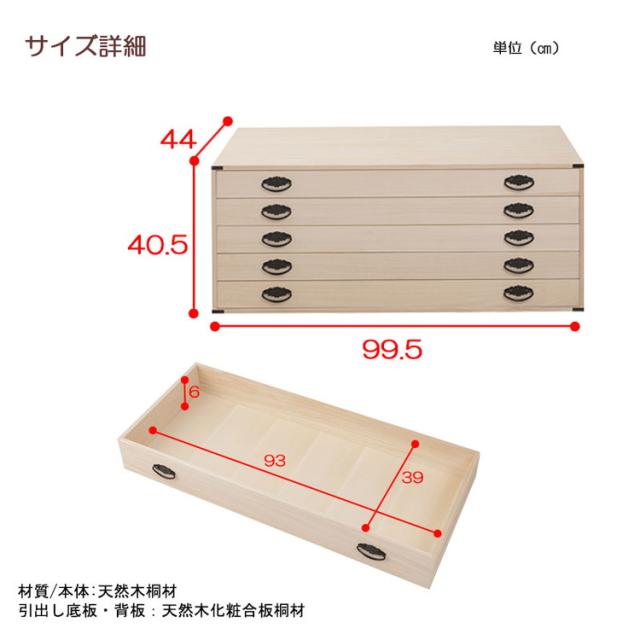 たとう紙ごと余裕で収納 桐タンス 着物 5段 国産 上置き 五段 日本製 桐 三段 チェスト 幅99 HI-0065 押入れ コンパクト 収納 和室 押入れ【送料無料】