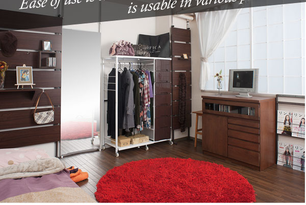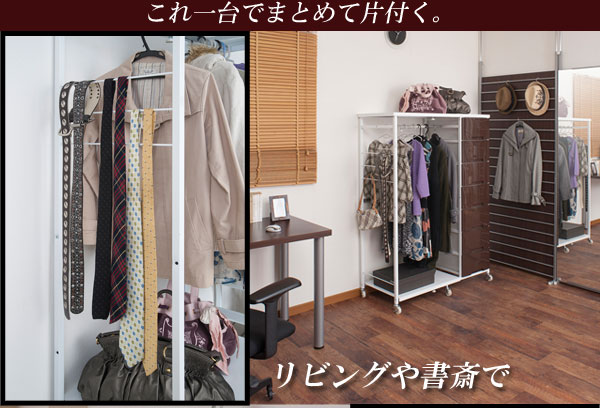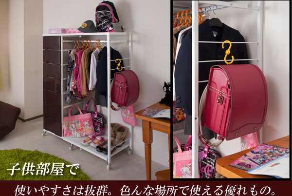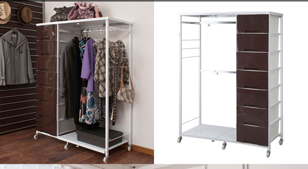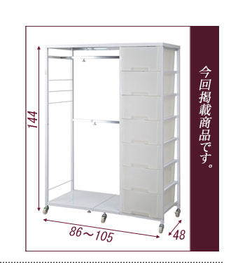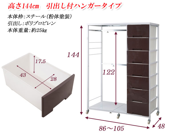 ■商品の仕様/フレーム:スチール(エポキシ樹脂粉体塗装)、ハンガー部:スチール(メッキ仕上げ)、引出し:ポリプロピレン