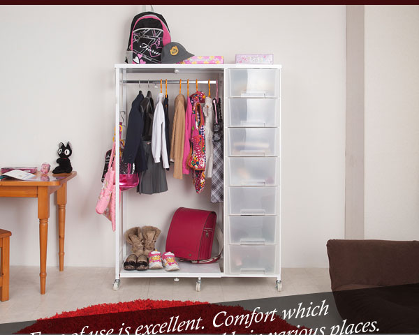 ■商品について/どんどん増える洋服もこれがあれば綺麗に整理整頓できる引出し&ハンガーラックが新登場!スチールフレームで頑丈なつくり、それを支えるキャスターも大きめ頑丈で移動も楽々。多杯引出しで小分けに収納ができて便利!ハンガーサイズは伸縮ができて置き場所や収納量によって自在にアレンジ可能。天板にはカバンなど服飾品いっさいがっさいしまえる多機能ハンガーチェスト。高さ2タイプの2色から。同シリーズの多杯チェストと並べて大量収納で収納の達人に。安心・安全の日本製。