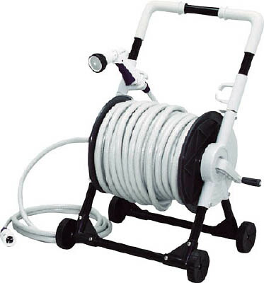 ●持ち運びに便利なキャスター付のホースリールです。●散水したい所まで本体ごと移動できますので、離れた場所でも楽に作業ができます。●耐圧糸入りホースと水流が6パターン(キリ・ジェット・シャワー・ジョーロ・カクサン・ストップ)に切り替えられる水量調整アクアガンが付いたフルセットです。