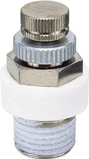 ●消音器付排気絞り弁です。●電磁弁に直接付けてのシリンダスピード調整が可能です。●スピードコントローラに比べローコストです。