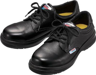 ●燃やしても有害物質が発生しないエコレザーを採用しています。業界初のエコマーク認定商品です。●クッション性に優れた素材を2倍の厚みにした、特別なカップインソールを使用しています。●親指をまっすぐに伸ばして、快適に着用できるワイド樹脂先芯を使用しています。●優れたクッション性と足裏にフィットする立体成形によりハイクラスの履き心地を実現しました。●JIS付加的性能「F」合格の滑りにくい靴底です。●寸法(cm):27●足幅サイズ:EEE●JIS T 8101 革製S種(普通作業用)E・F合格●JIS T 8103 ED-P/C2合格(一般静電靴)●耐圧迫性荷重:10±0.1kN●色:ブラック●電気抵抗値:1.0×10[[の5〜8乗]]Ω(23℃ C2)●甲被:牛クロムフリー革(ソフト型押)●先芯:ワイド樹脂●靴底:発泡ポリウレタン2層