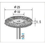 ●軸径(mm):3●最高使用回転数(rpm):15000●外径(mm):25●幅(mm):1.5●軸長(mm):43●毛材:SUS304●質量(g):70