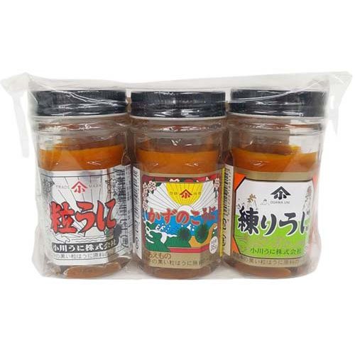 ●粒うに・練りうに・かずのこうにの3本セットです。