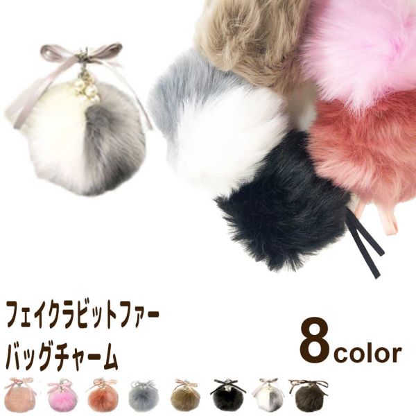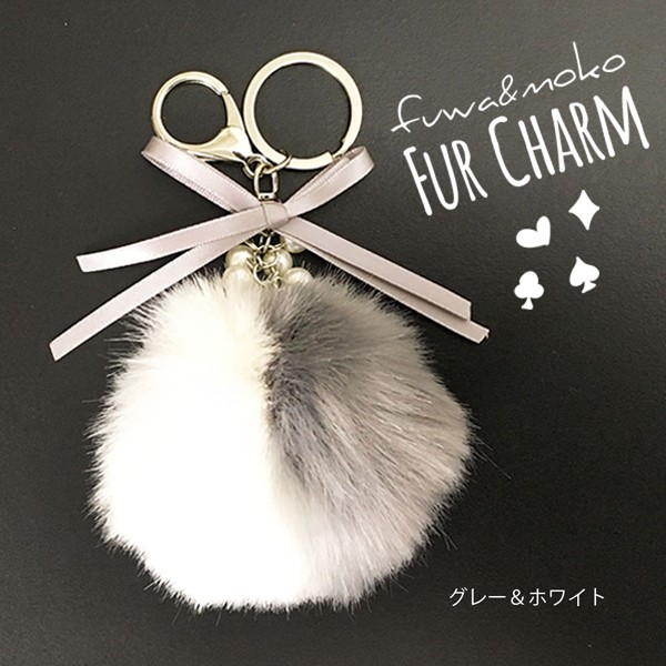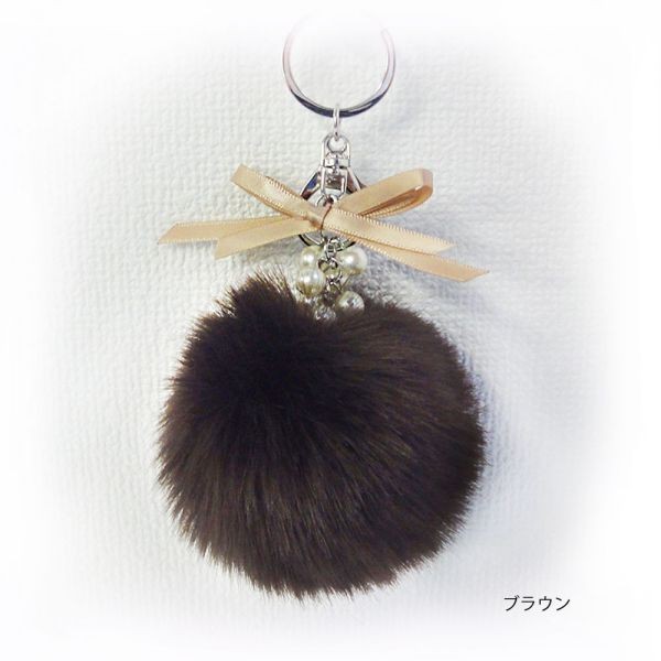 キーホルダー ふわふわ ファー バッグチャーム ポンポン チャーム ボンボン バッグ カバン 鞄 リボン付き 毛【送料無料】