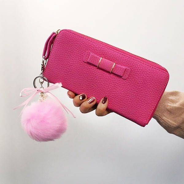 ・りぼん付きボンボンファーバッグチャーム