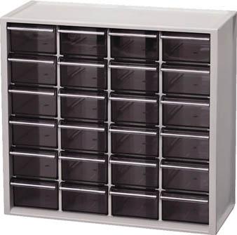 ●間口(mm):310●奥行(mm):130●高さ(mm):290●最大積載量(kg/台):4.8●引出し:24個●引出し色:ライトグレー●引出し内寸(mm)間口×奥行×高さ:65.9×110.7×41.1●有効内寸(mm)間口×奥行×高さ:287.1×123.7×267.8●仕切板(枚):38●色:ライトグレー●質量(kg):1.7●収納物の目安:小物など