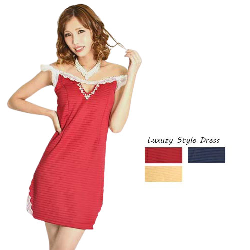 【美シルエット オフショルレース胸元オープンタイトミニドレス】ドレス キャバ キャバドレス パーティードレス