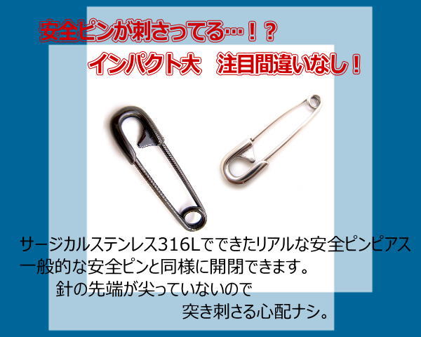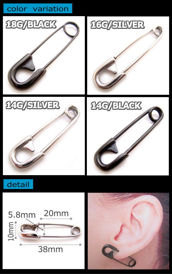 安全ピン 38mm ビッグサイズ ピアス サージカルステンレス316L 14G 16G 18G ボディピアス 軟骨