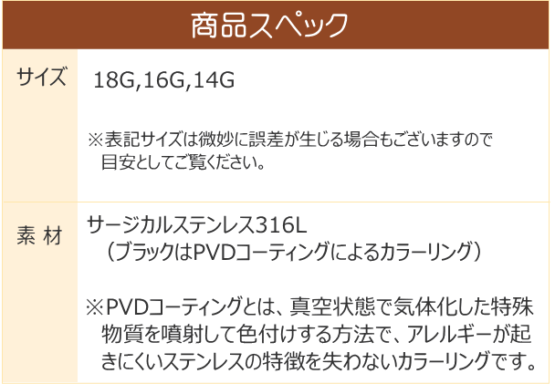 《関連キーワード》ボディピアス ボディーピアス ボディピ ピアス アクセサリー ゲージ 18G 16G 14G 12G 10G 8G 6G 4G 2G 0G 00G ホール 拡張 サージカルステンレス316L 内径 有効軸 シャフト サージカルステンレス