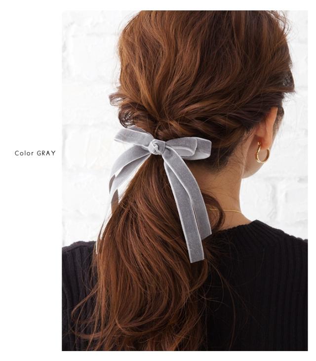 【ゆうパケット送料無料】ヘアゴム ヘアアクセ レディース リボン ブラック ブラウン グレー ボルドー ピンク