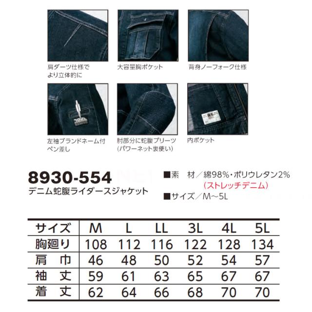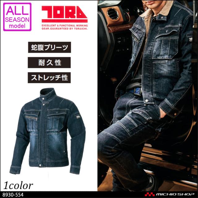 作業服 寅壱 デニム蛇腹ライダースジャケット 8930-554