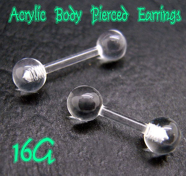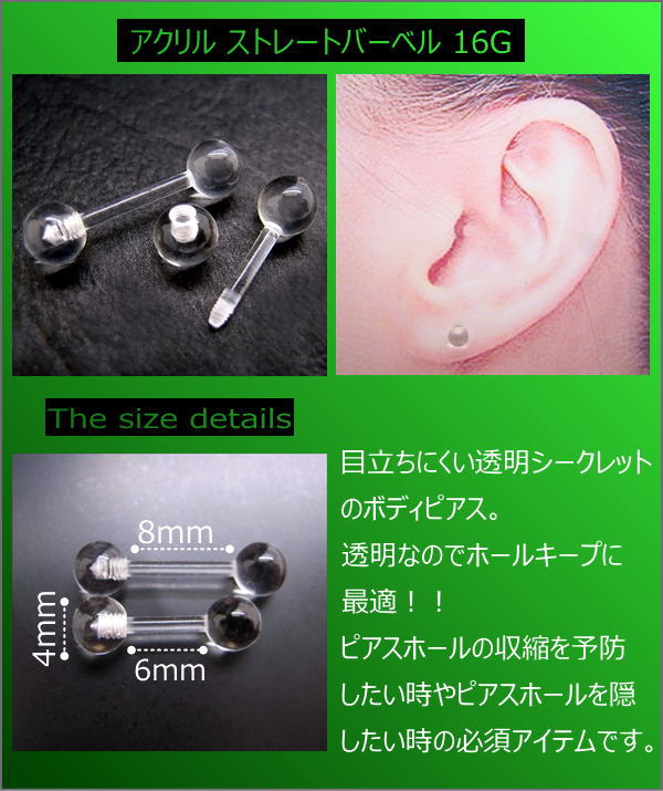 UV アクリル 透明ピアス シークレットピアス ストレートバーベル 16G ボディピアス アレルギーフリー